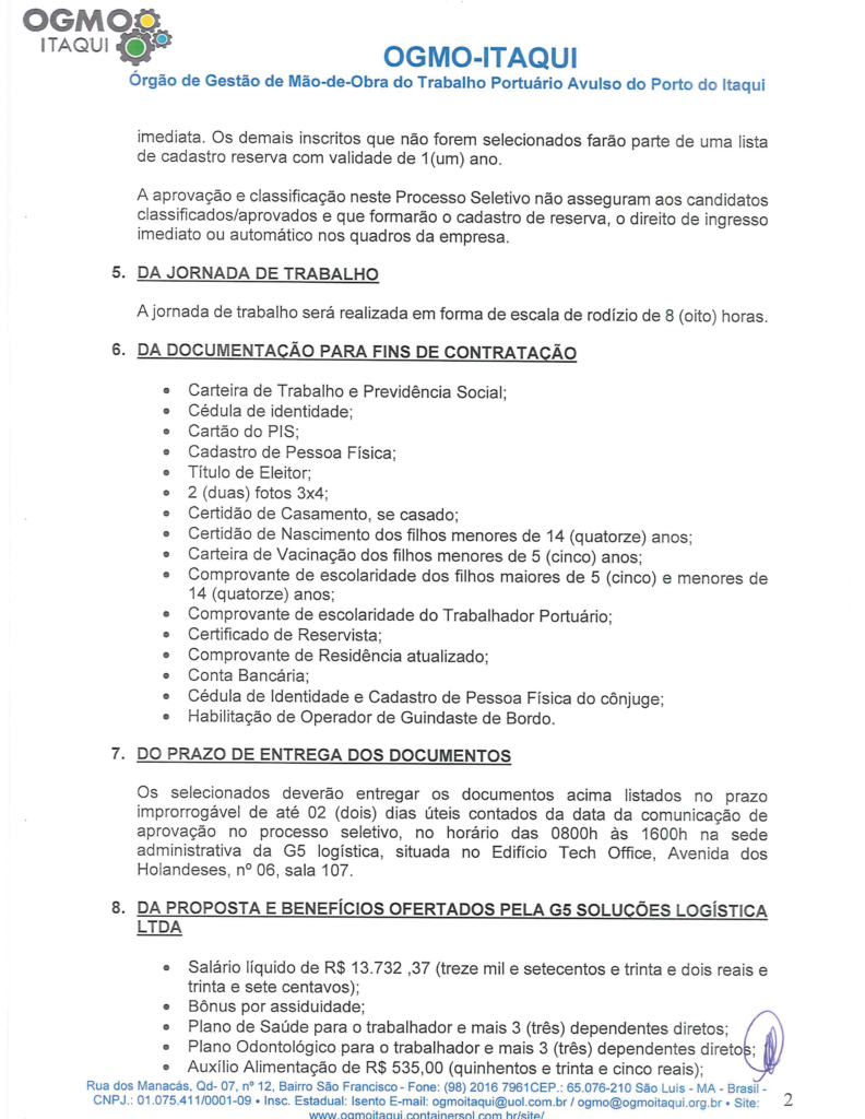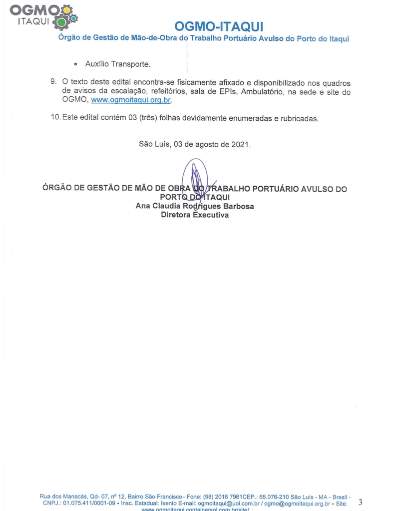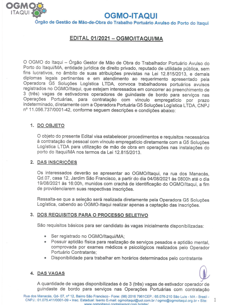 Edital de contratação de trabalhador portuário avulso